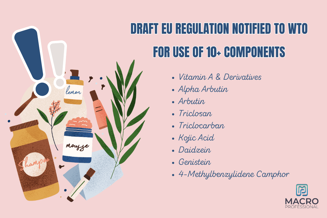 8 Haziran 2023’te Avrupa Komisyonu, WTO’ya Kozmetik Yönetmeliğinde yapılacak bir değişiklik taslağını bildirmiştir. Spesifik olarak, Tüketici Güvenliği Bilimsel Komitesi’nin (SCCS) en son bilimsel görüşlerine dayanarak, Avrupa Komisyonu, 1223/2009 Sayılı Tüzüğün (EC) II, III, V ve VI Eklerini değiştiren taslağını hazırlamıştır.