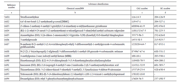 Ek II’ye eklenen 14 adet madde aşağıda listelenmiştir.